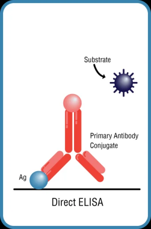 直接ELISA,其中抗原固定在ELISA板上,并且一抗帶有標記(圖1A)