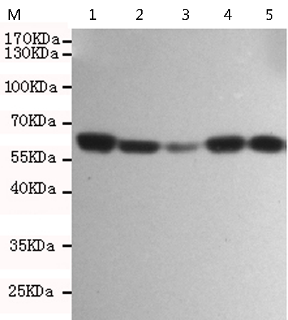 HCT116, COS7, K562, A549 and Hela cell lysates