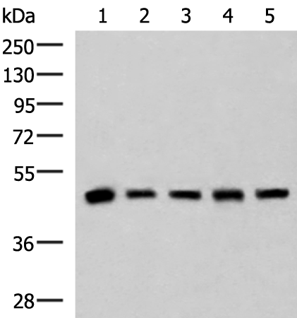 Human fetal liver tissue, HepG2, A172, Hela and Jurkat cell lysates |