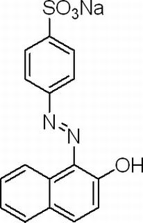 其他中文名稱 : 酸性橙II;金橙Ⅱ;酸性金黃II;2-萘酚偶氮對苯磺酸鈉;二號橙;桔黃Ⅱ;酸性橙;β-萘酚橙;酸性二號橙;酸性橙7;4-(2-羥基-1-萘偶氮)苯磺酸鈉鹽;金蓮橙OOO;β-萘酚偶氮對苯磺酸鈉;金黃粉;2-萘酚偶氮對苯磺酸鈉
