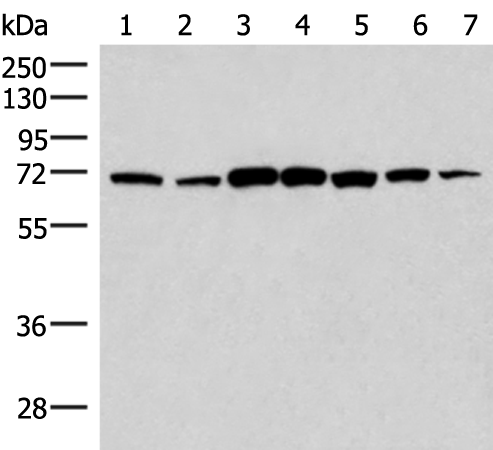 A549 and Hela cell, Rat brain tissue, Mouse brain tissue, 293T, Raji and NIH/3T3 cell lysates